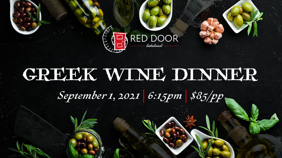 Join us on September 1 at 6:15pm for a culinary and wine tour through Greece. These traditional Greek dishes have been expertly paired with the best regional wine to bring you a true taste of the Mediterranean. This family style, fine dining experience will take place on the patio. Space is limited. (Tax and gratuity are not included.)